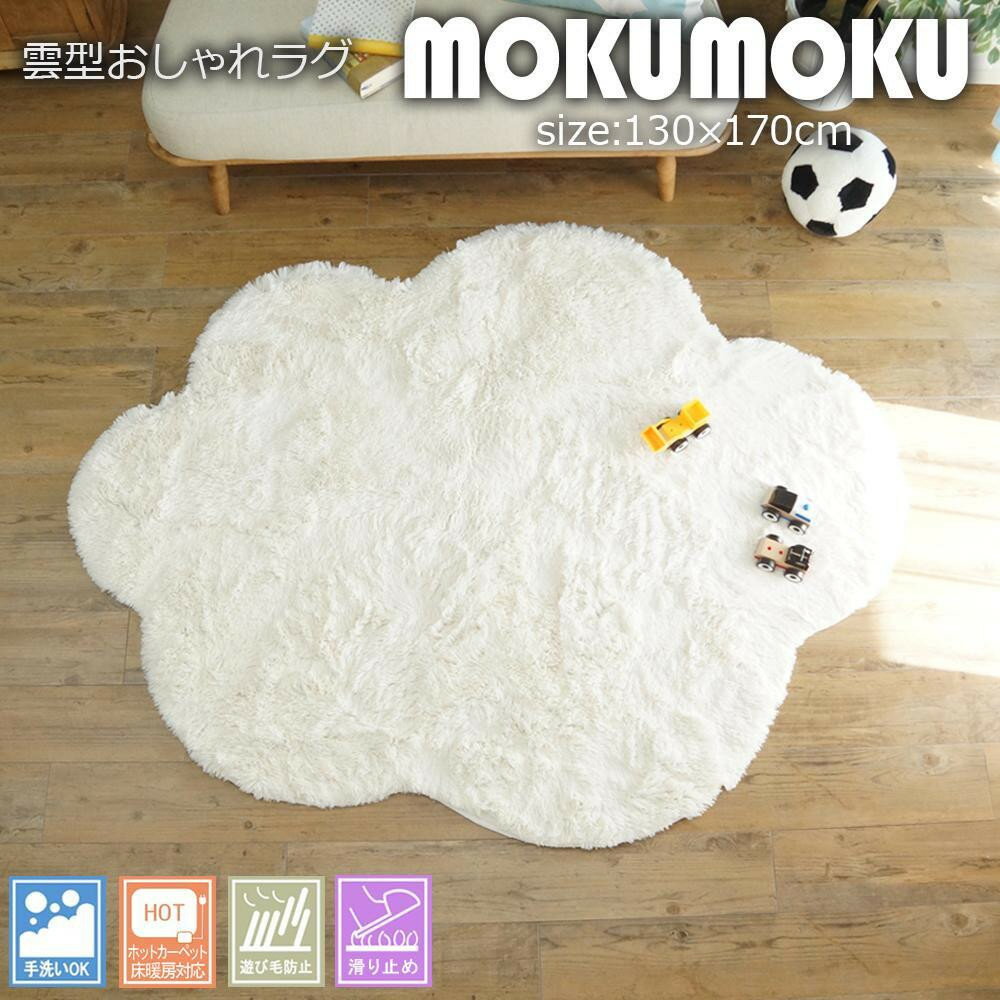洗える雲ラグ!!ふわふわ雲型のおしゃれなシャギーラグ MOKUMOKU(モクモク) 130×170cm「他の商品と同梱不可/北海道、沖縄、離島別途送料」