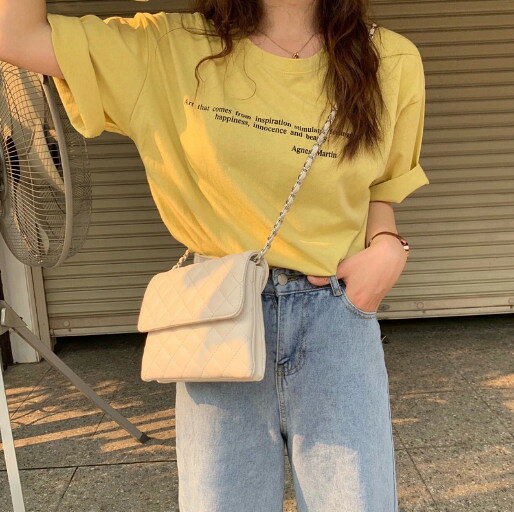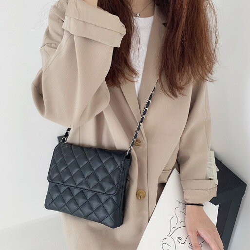 バッグ 斜め掛け チェック チェーン スクエア オシャレ 原宿系 シンプル 韓国ファッション (T)
